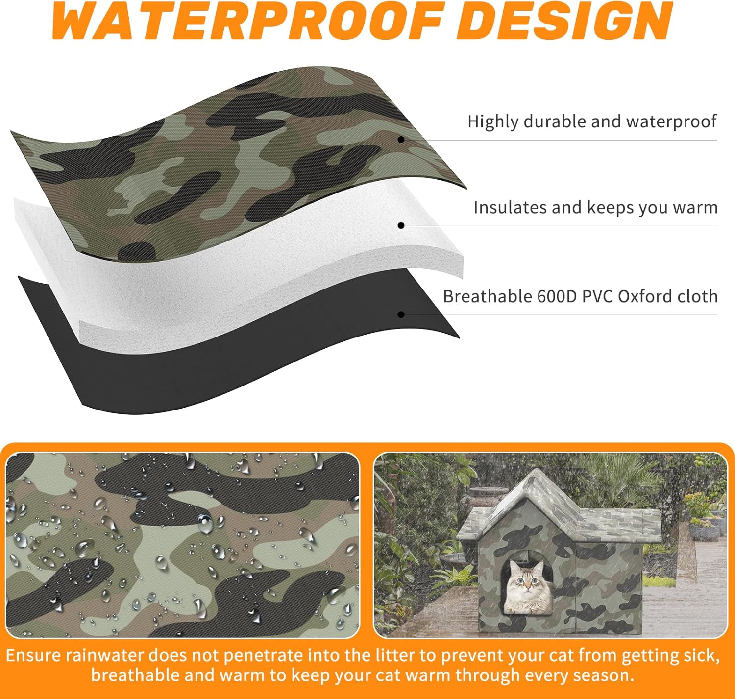 - DIY Design Cat House: The cat house outdoor is designed with waterproof and windproof side door curtains and thresholds to protect pets from winter or rainy days. Innovative DIY cardboard design prevents the outside cat house for winter from being misplaced or discarded.