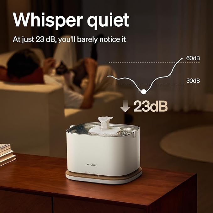 - Pet-Proof & Peaceful: PETLIBRO cat fountains for drinking is engineered with a stable, anti-tip design to withstand playful paws. Its whisper-silent operation ensures it won't disturb you or your pet, making it perfect for any room, even the bedroom.