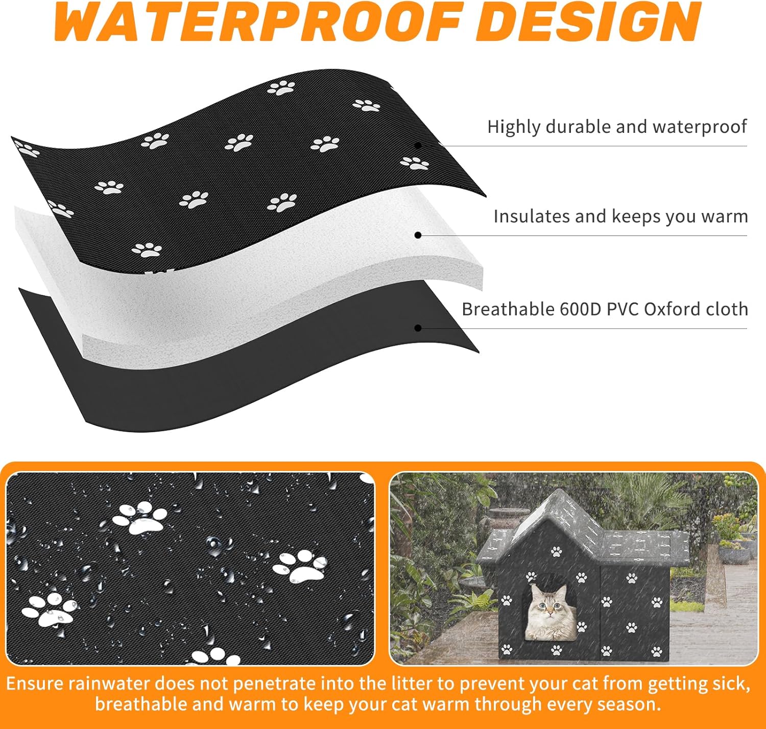 Outdoor Cat House Weatherproof, Large Feral Cat House for Winter, Collapsible Outdoor Cats Shelter in Winter with Door and Soft Mat, Easy to Assemble (Black)