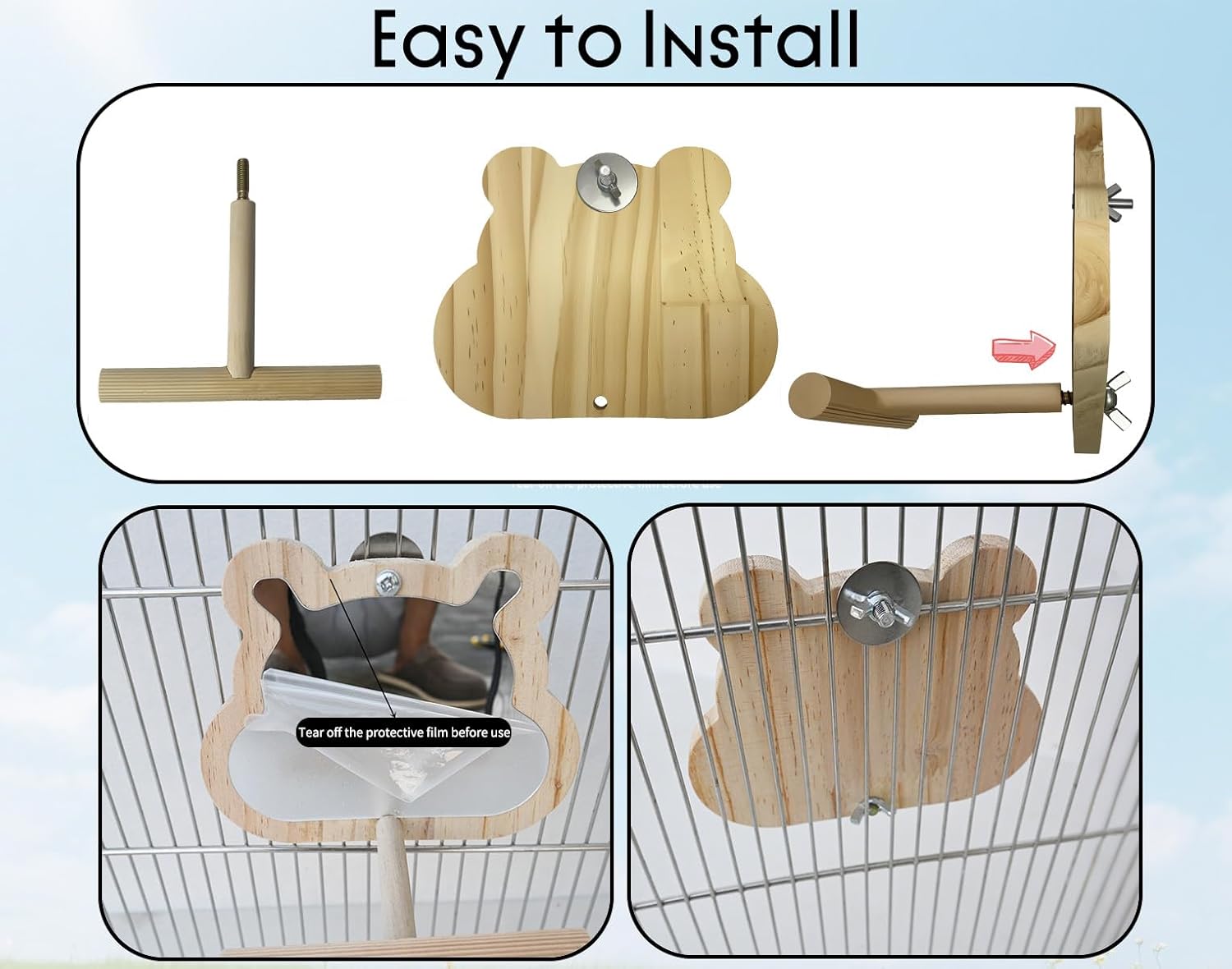 - Natural Wood Material: This bird mirror come with a chewable perch stand and made of natural wood, offering entertainment, comfort, and safe platform for your pets