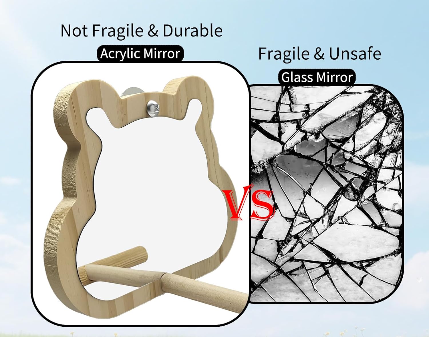 - Bear-shape Design: Unlike ordinary glass mirrors, ours made of acrylic and has protective edges to prevent scratches, more shatterproof, ensuring your bird's safety during playtime