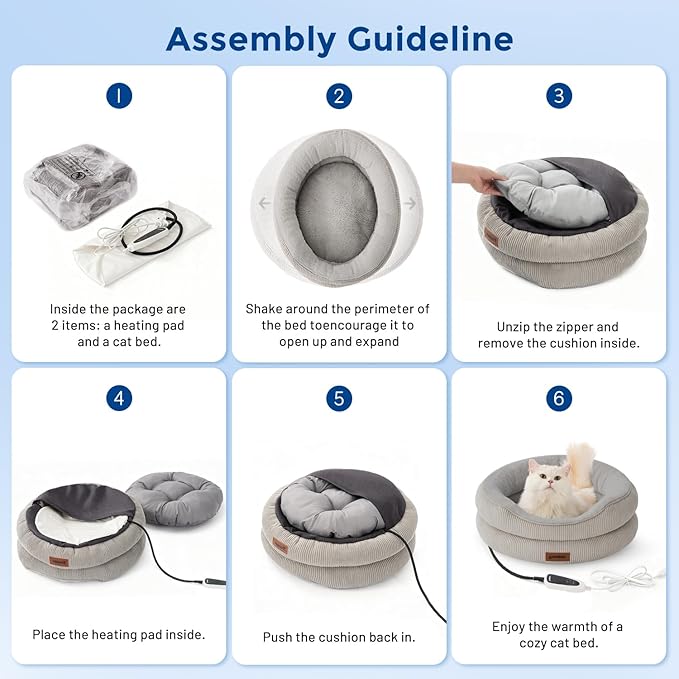 - Easy to Clean: The entire cat bed is machine or hand washable. The heating pad is not washable; wipe clean with a damp cloth. Please read the included instructions carefully before use to ensure proper and safe operation.