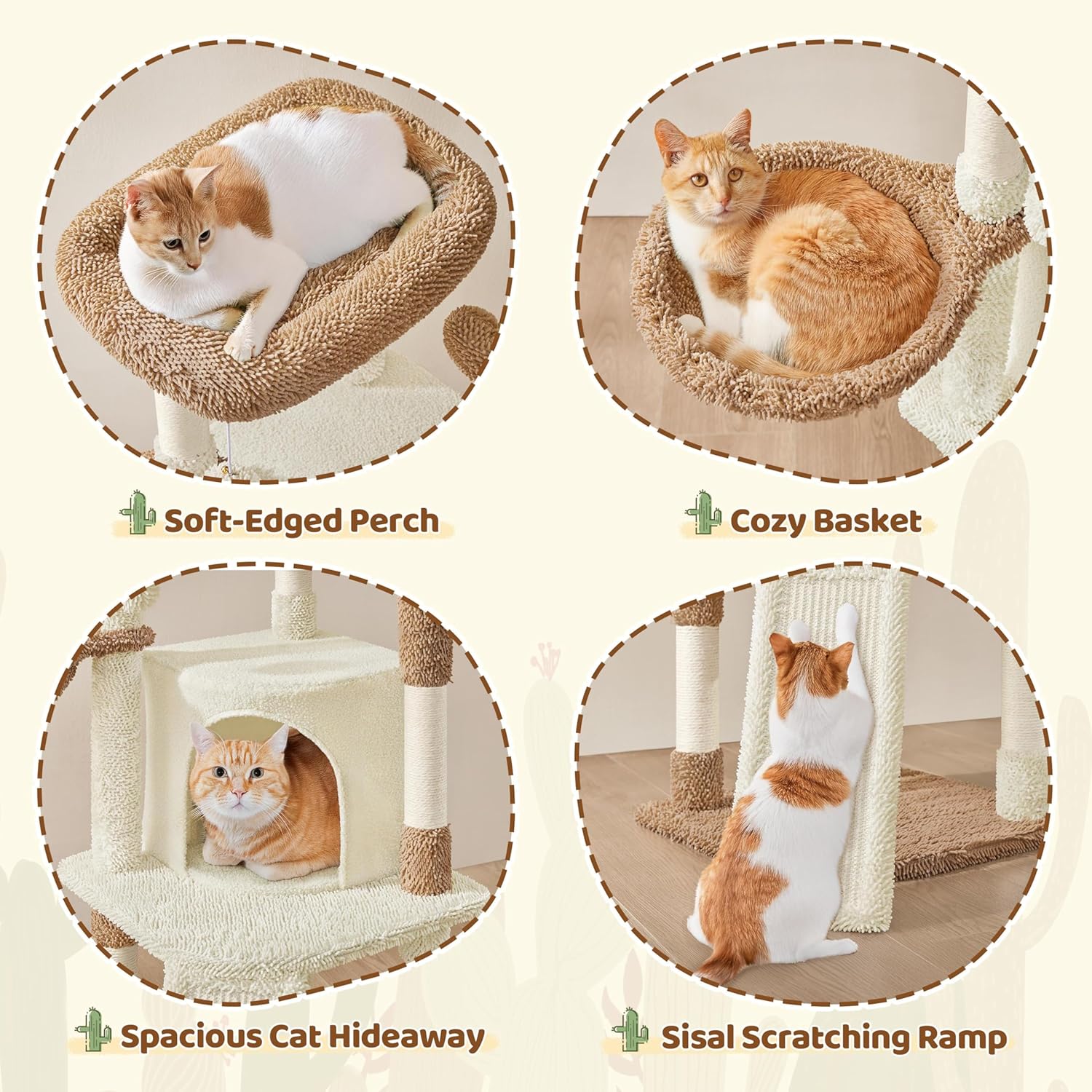 Yaheetech Cactus Cat Tree, 42in Cat Tower for Indoor Cats, Multi Level Kitten Condo Scratching Post, Pet Activity Center Furniture w/Ball, Plush Perch, Platform, Basket, Beige/Brown