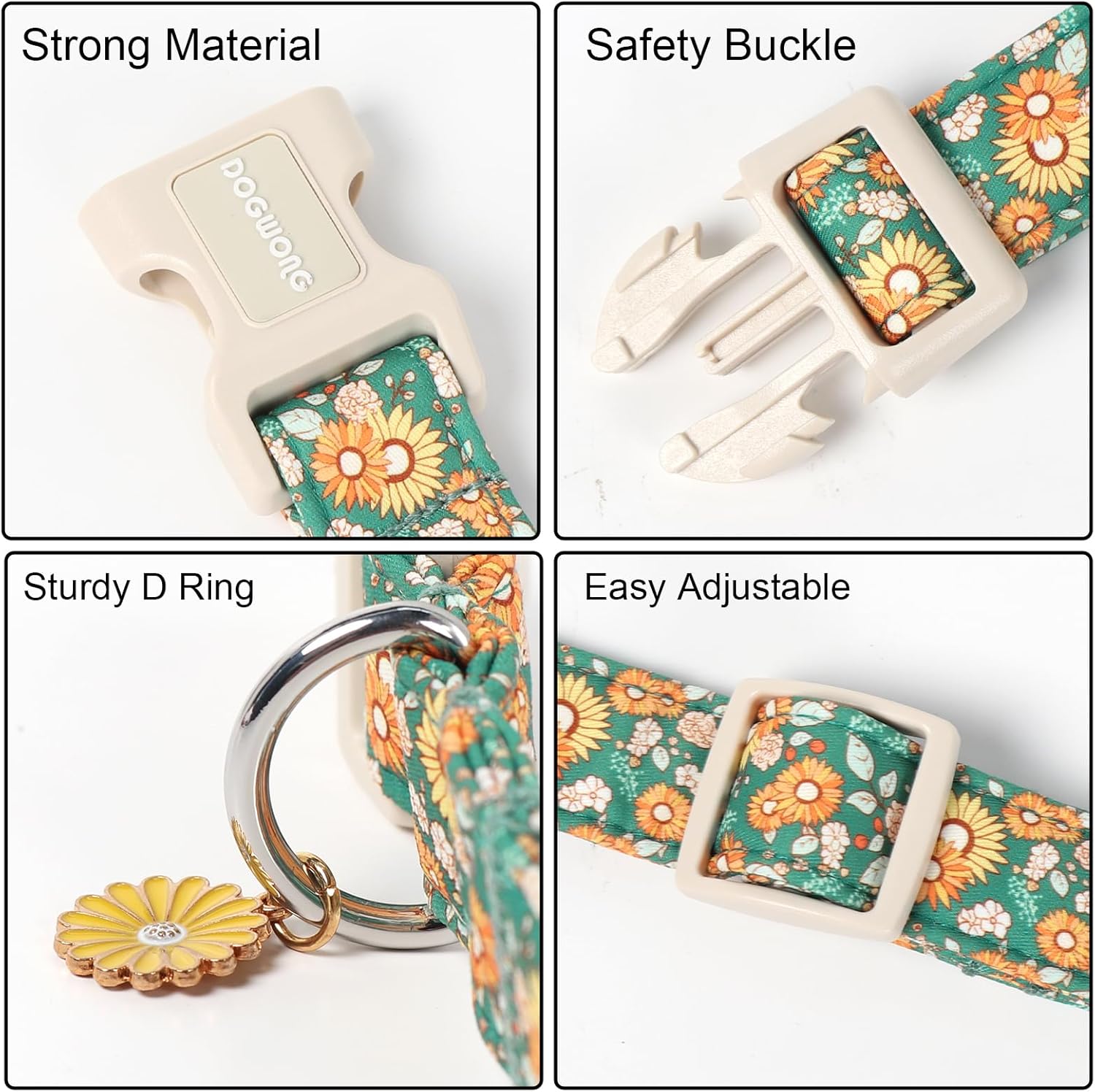DOGWONG Flower Dog Collar, Fall Sunflower Dog Collars, Adjustable Cute Pet Collars Girl Design Dog Collar for Small Medium Large Dogs