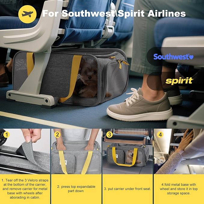 - 6.【FOR airplane travel,short distance cat trip,and vet visiting】This carrier match size requirement of three airlines(Spirit/ Southwest/air canada ),so you don't need to buy another one for those airlines.This carrier also can be used for a short distance car travel,like a vet visit.