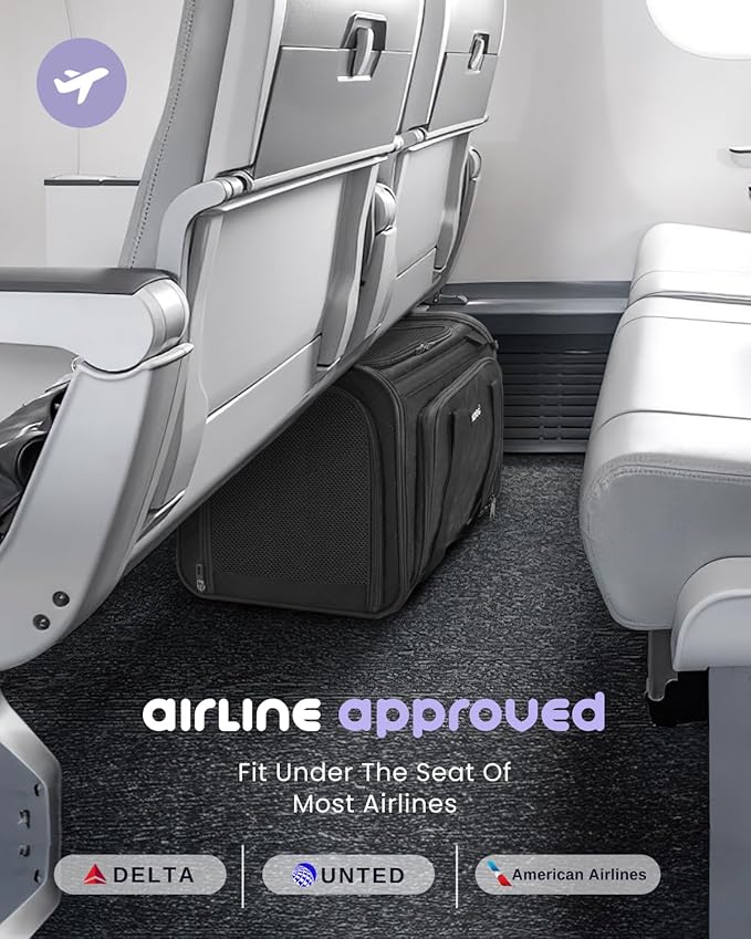 - Car Safety & Airline Approved:Measuring 20'' x 13'' x 13'', this cat carrier is designed to fit under airplane seats and securely attach to car seat belts, ensuring a safe and comfortable journey for your pet during flights and road trips
