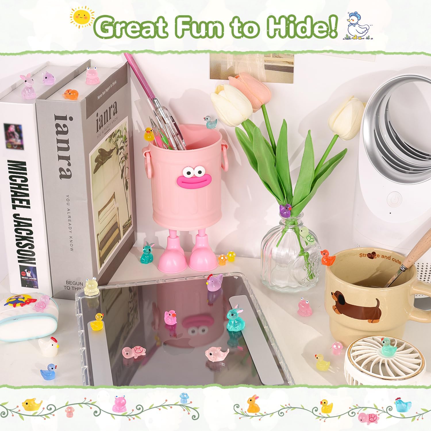 - PACKAGE CONTENT -- One package includes 110 pcs animals which can glow in dark,like duck,chicken,turtle,rabbit,frog,etc. Each tiny figure is crafted with intricate details, making them cute and eye-catching.Use them to play hide games for enhance fun