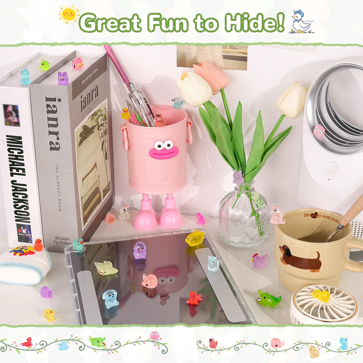 - PACKAGE CONTENT -- One package includes 150 pcs animals which can glow in dark,like duck,chicken,turtle,rabbit,frog,etc. Each tiny figure is crafted with intricate details, making them cute and eye-catching.Use them to play hide games for enhance fun