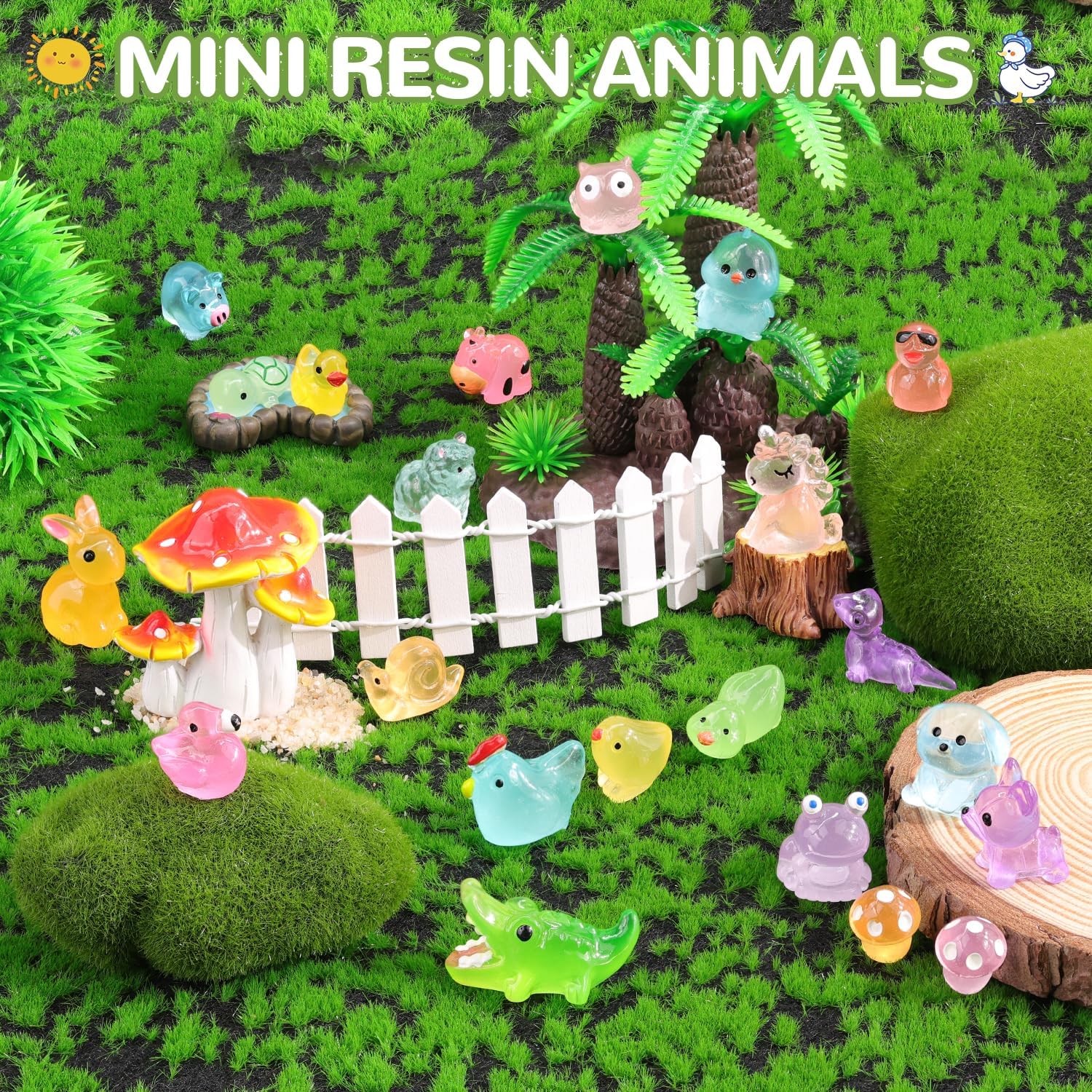 150PCS Mini Resin Animals Tiny Cute Figurines Glow in Dark, Miniature Figures to Hide, Little Animal Toys Small Accessories for Topper Desk Garden Dollhouse Landscape Aquarium Ornaments Crafts & Decor