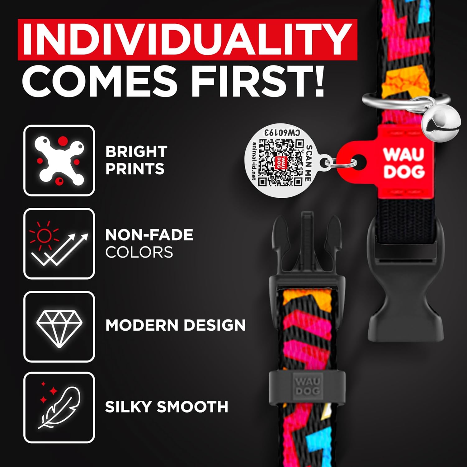 WAUDOG Nylon Cat Collar with Removable Bell and QR ID Tag for Small, Medium and Large Breeds Adjustable Long Lasting Durable Kitten Collars Boy & Girl