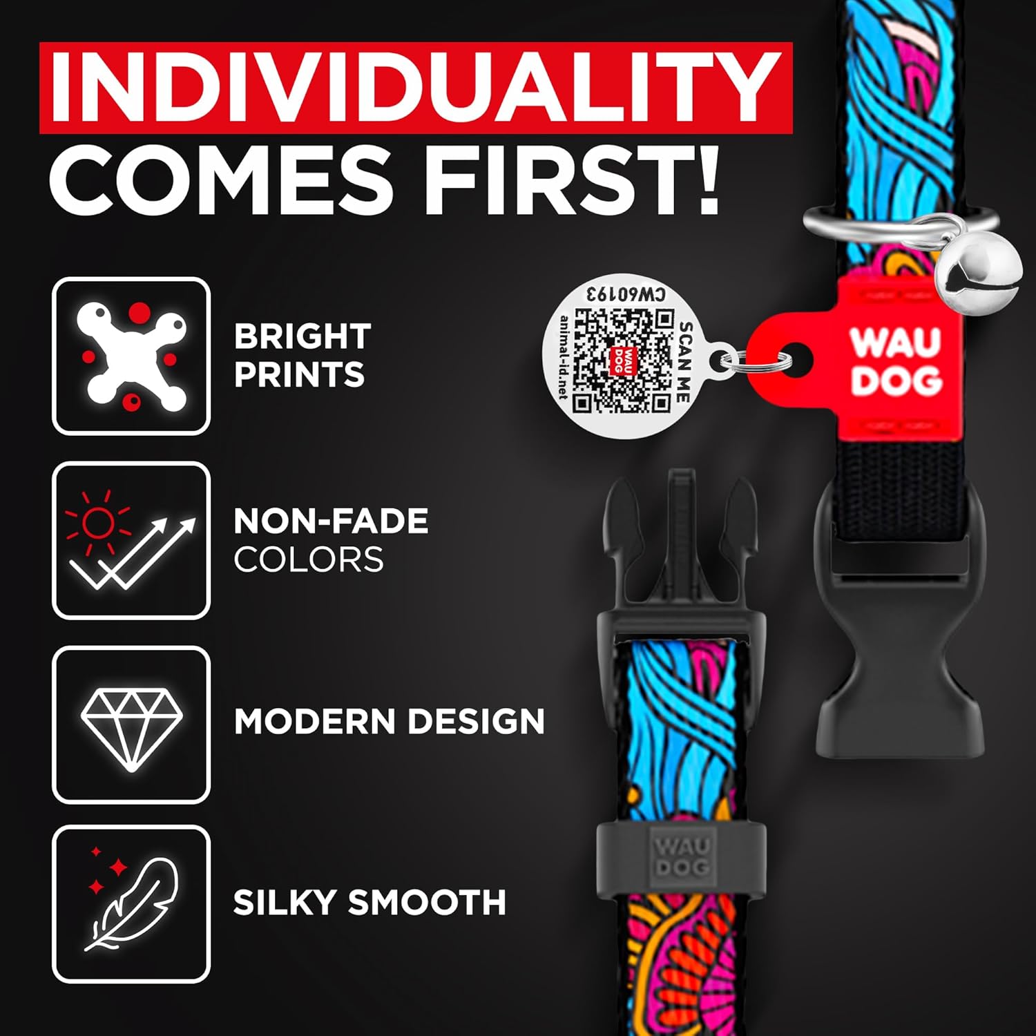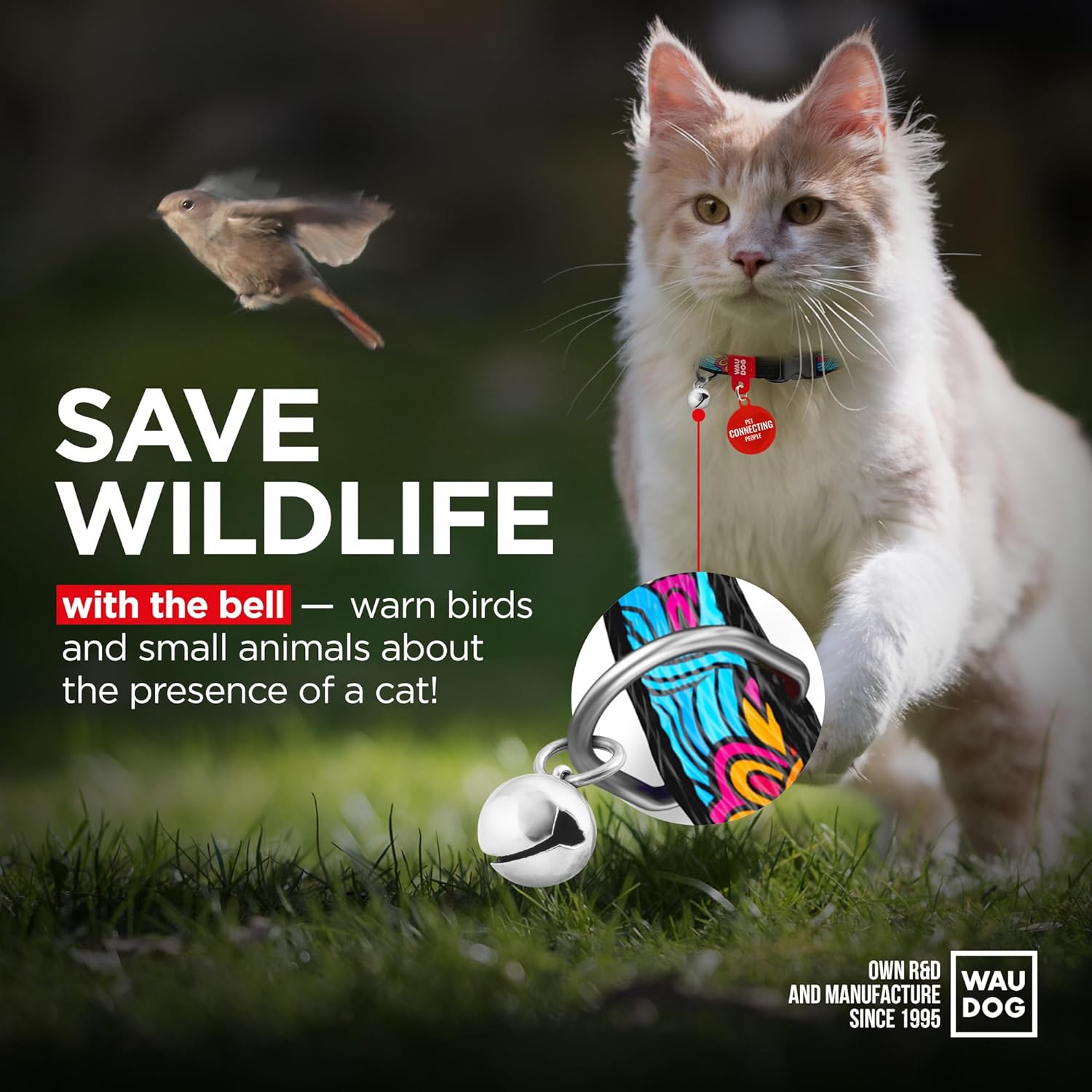 WAUDOG Nylon Cat Collar with Removable Bell and QR ID Tag for Small, Medium and Large Breeds Adjustable Long Lasting Durable Kitten Collars Boy & Girl