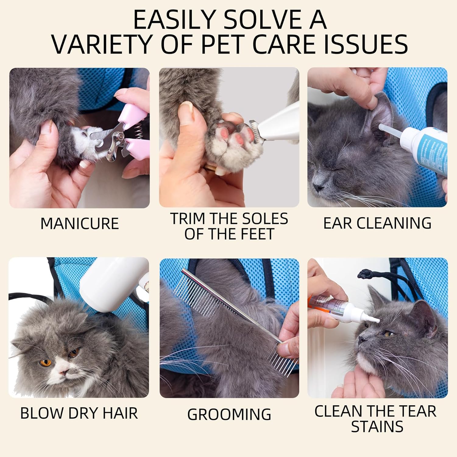 Pet Grooming Hammock for 6-11 lbs Pets - Adjustable Height, Tool Bag, 30 lb Capacity, Door-Hook Hanging, Foldable, Blue