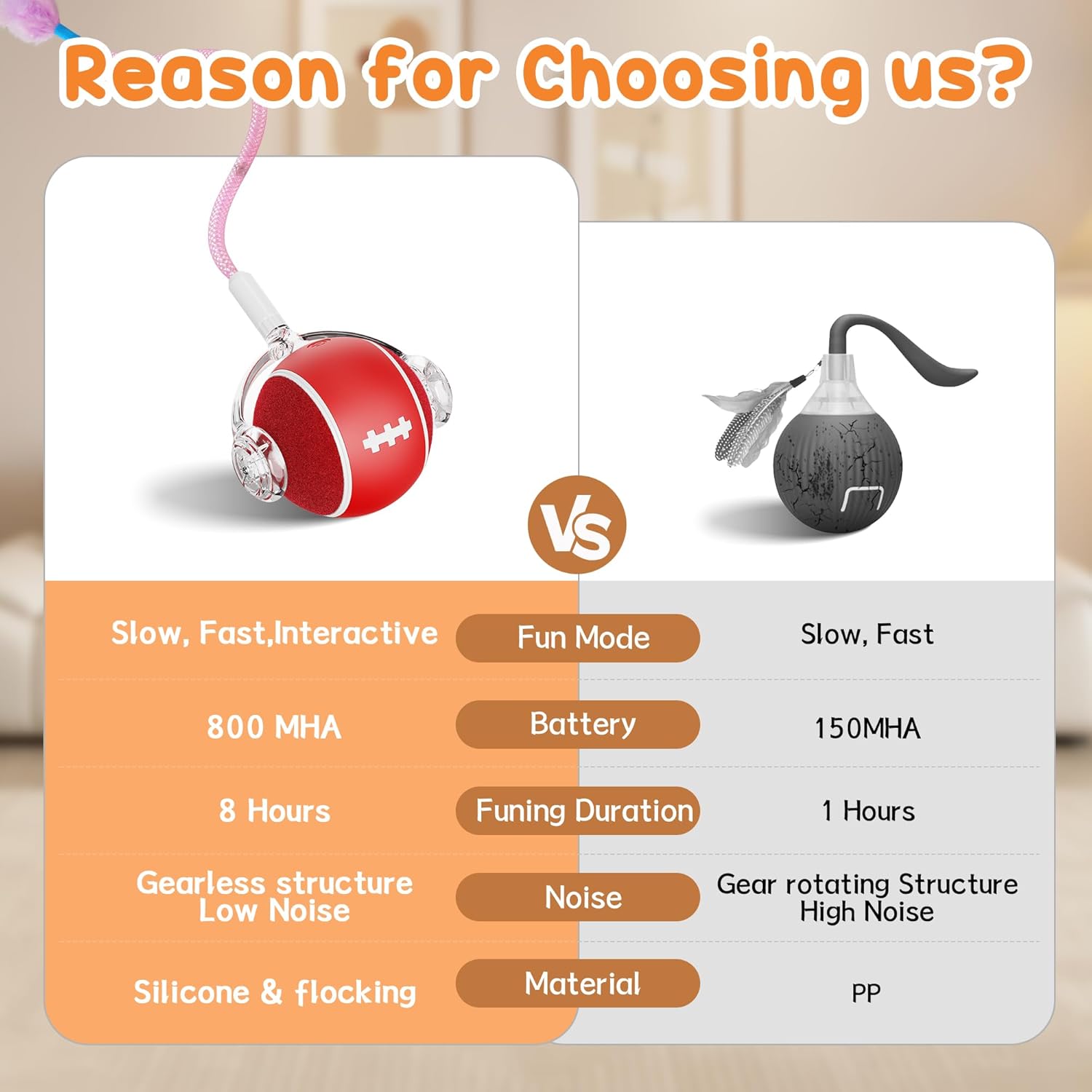 - Ultra-Low Noise:This moving cat toy combines premium silicone and flocking materials, plus a gearless internal structure, significantly reducing noise during rolling and collisions. Perfect for quiet indoor play, it won’t disturb your home while keeping cats engaged—an ideal interactive cat toy for multi-cat households and timid kittens.