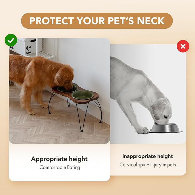 - Sturdy Enough Stand Frame:Raised dog bowl stand is made of high quality rustless metal material and acacia wood , much heavier, stronger and more durable than ABS plastic dog food bowl stand.