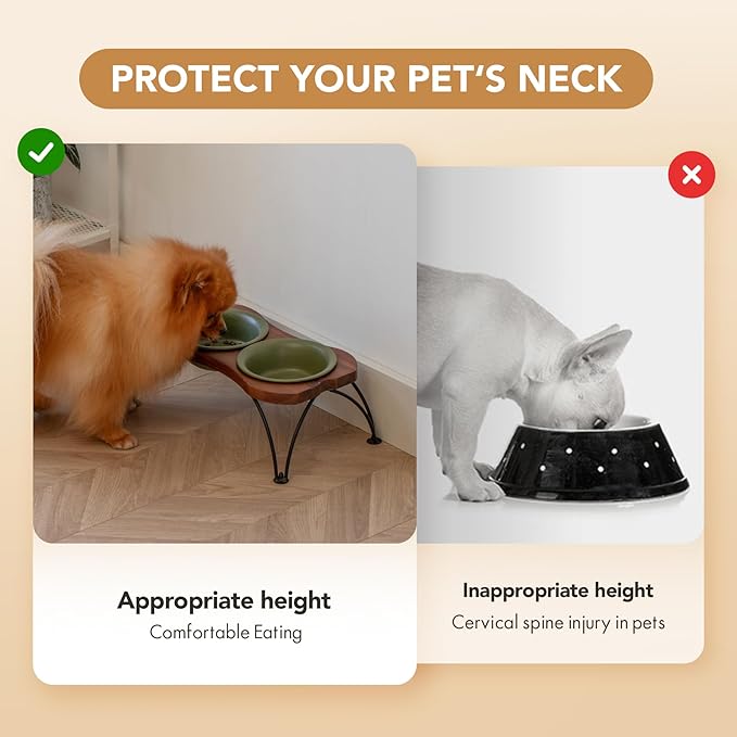 - Sturdy Enough Stand Frame:Raised dog bowl stand is made of high quality rustless metal material and acacia wood , much heavier, stronger and more durable than ABS plastic dog food bowl stand.