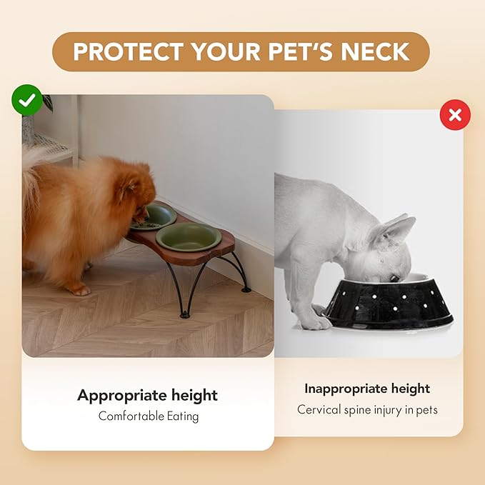 - Sturdy Enough Stand Frame:Raised dog bowl stand is made of high quality rustless metal material and acacia wood , much heavier, stronger and more durable than ABS plastic dog food bowl stand.