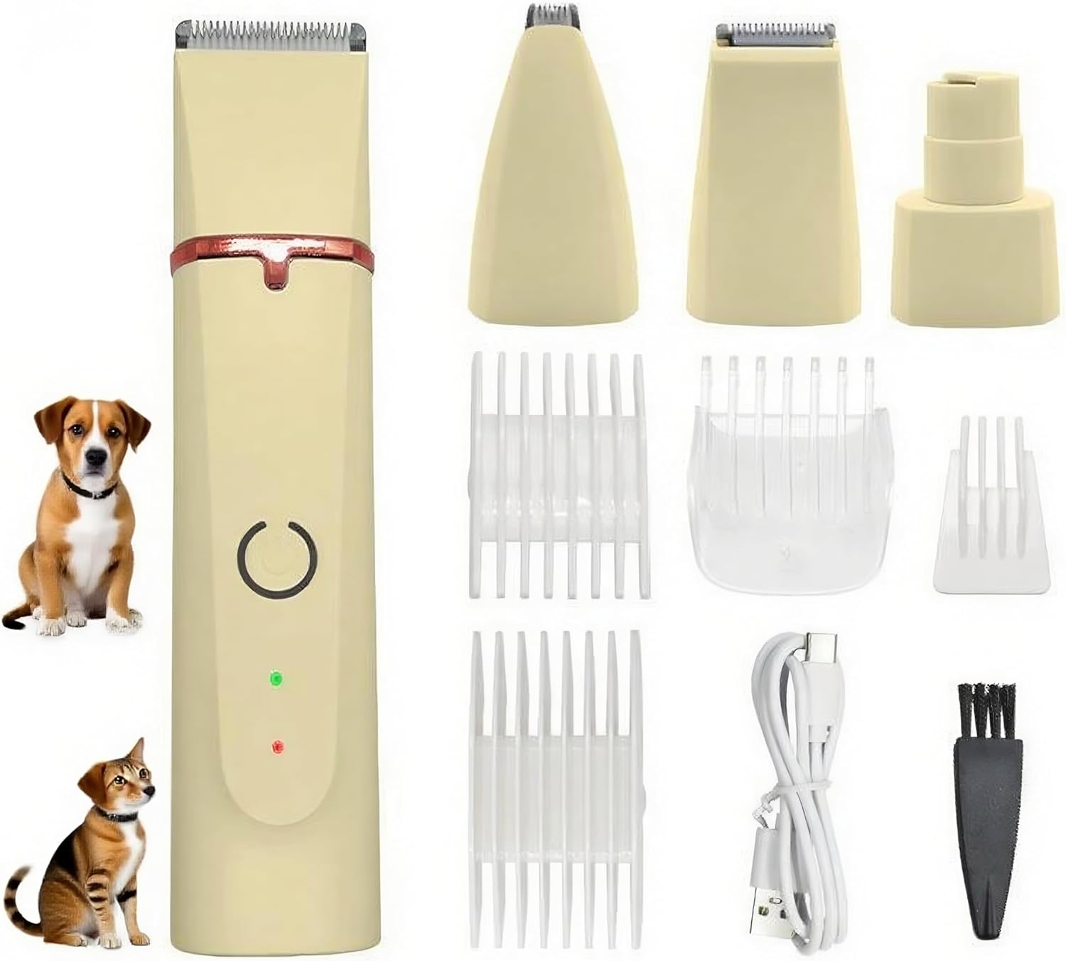 4 in1 Pet Dog Grooming Clippers Cat Nail Clipper&Paw Trimmer Dog Hair Trimmer-Low Noise Rechargeable - Cordless Quiet Pet Grooming Supplies for Dogs Hair Nail Clippers Around Eyes and Ears (Beige)