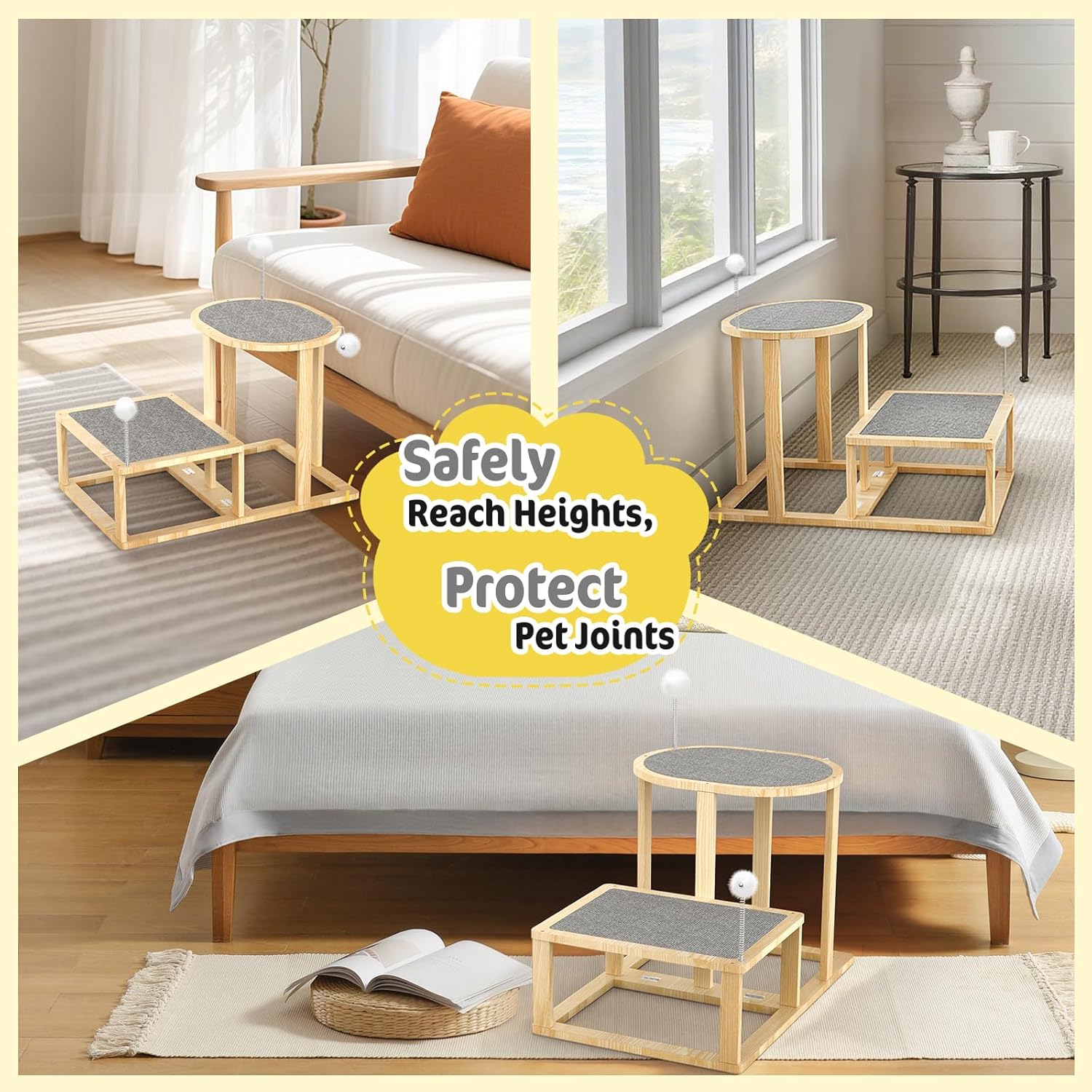 - 2-Step Wooden Pet Step: Elevated cat bed overall size: 64*42*43cm/25.2*16.5*16.9in, and each step size: 42*32cm/16.5*12.6in. The step is double fixed with mortise and tenon as well as screws, making it more stable and capable of carrying up to 33lbs.The double layer cat bed is spacious and sturdy, convenient for cats and dogs to rest or climb.