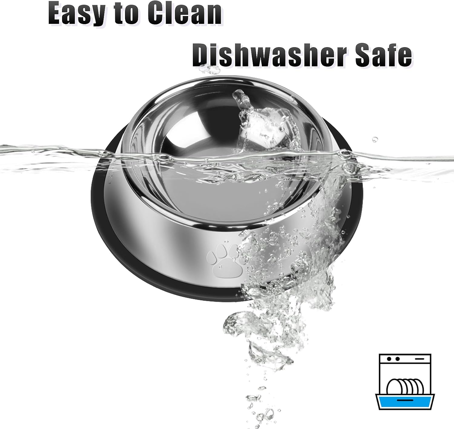 - REMOVABLE & EASY TO CLEAN: The base of stainless steel dog bowls features a convenient removable design, allowing you to take off the rubber ring and thoroughly clean the puppy feeding bowls in the dishwasher, No need to worry about the bowl surface or pattern fading or scratching.