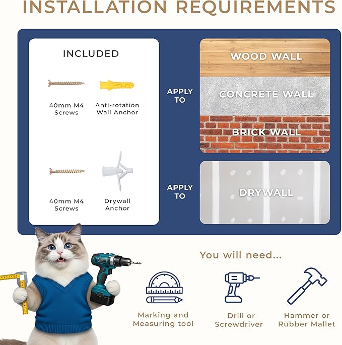 - COZY HANGOUT SPOT – The set includes a cozy cat wall hammock in both faux fur and faux-linen materials, offering soft, breathable options that suit different cat preferences.