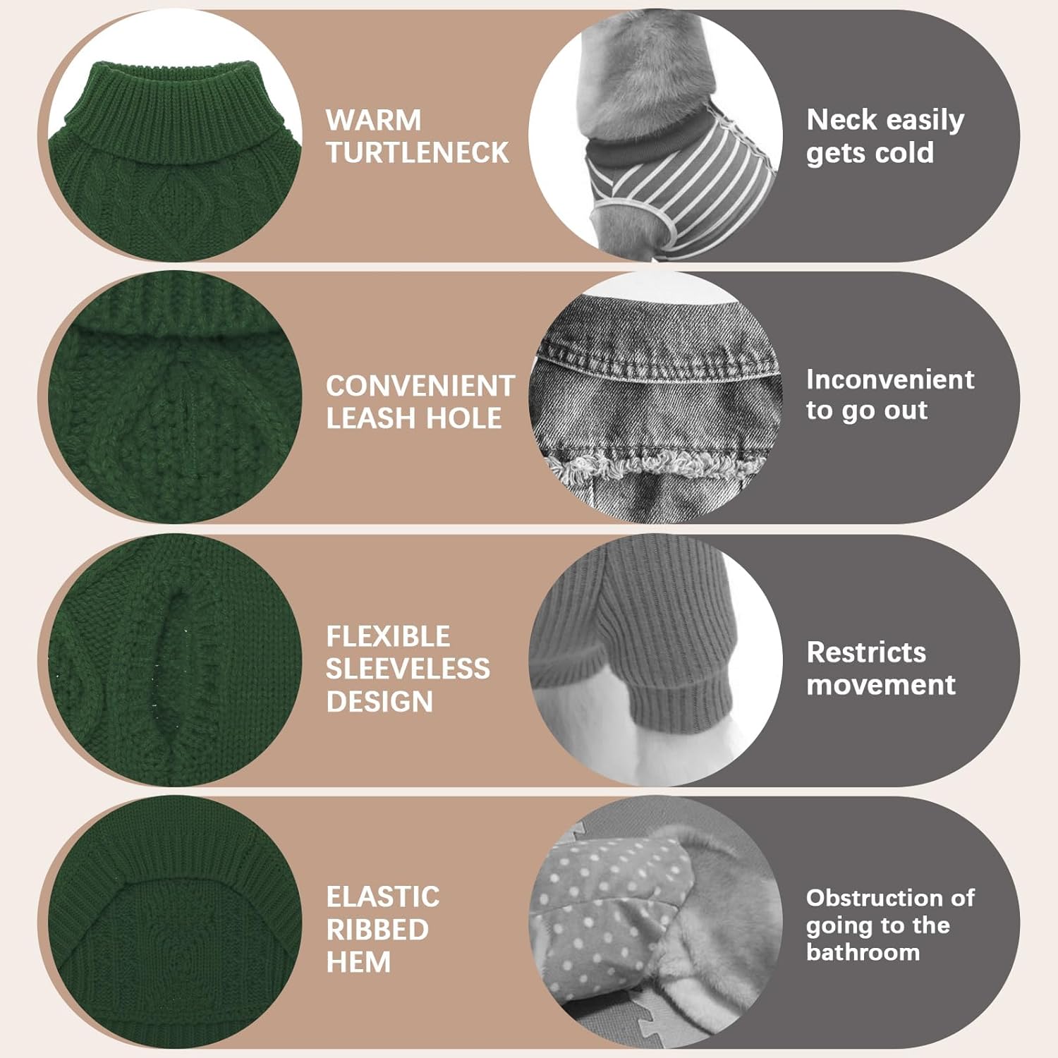 - 【Fashionably Warm】Our sleeveless dog sweater features a classic turtleneck design, keeping your furry friend stylish and cozy. The soft touch ensures ultimate comfort for your pet