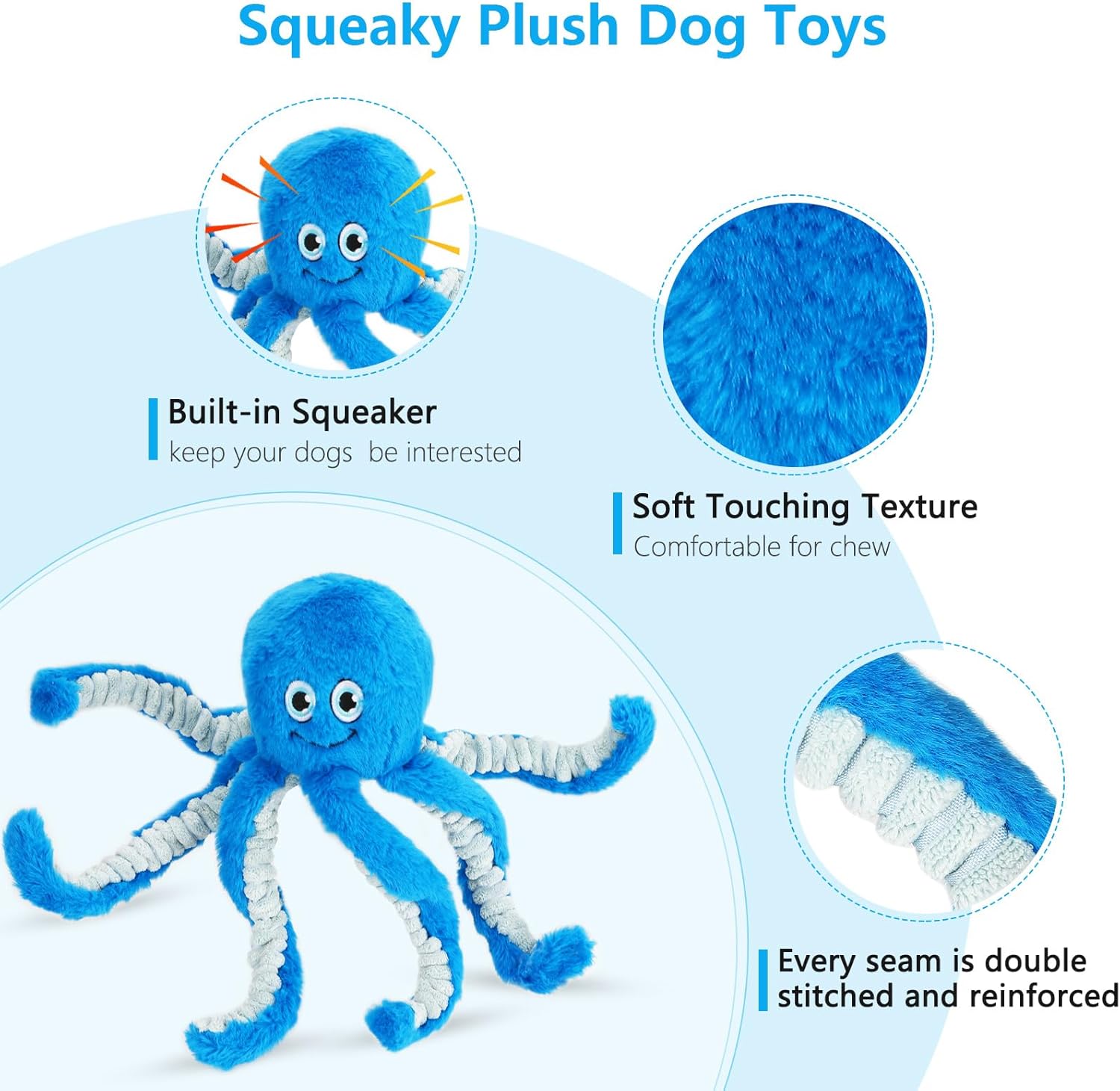Dog Toys with Crinkle Paper- Octopus Stuffed Dog Squeak Toy Interactive Tug of War Puppy Toys for Small, Medium, Large Dogs