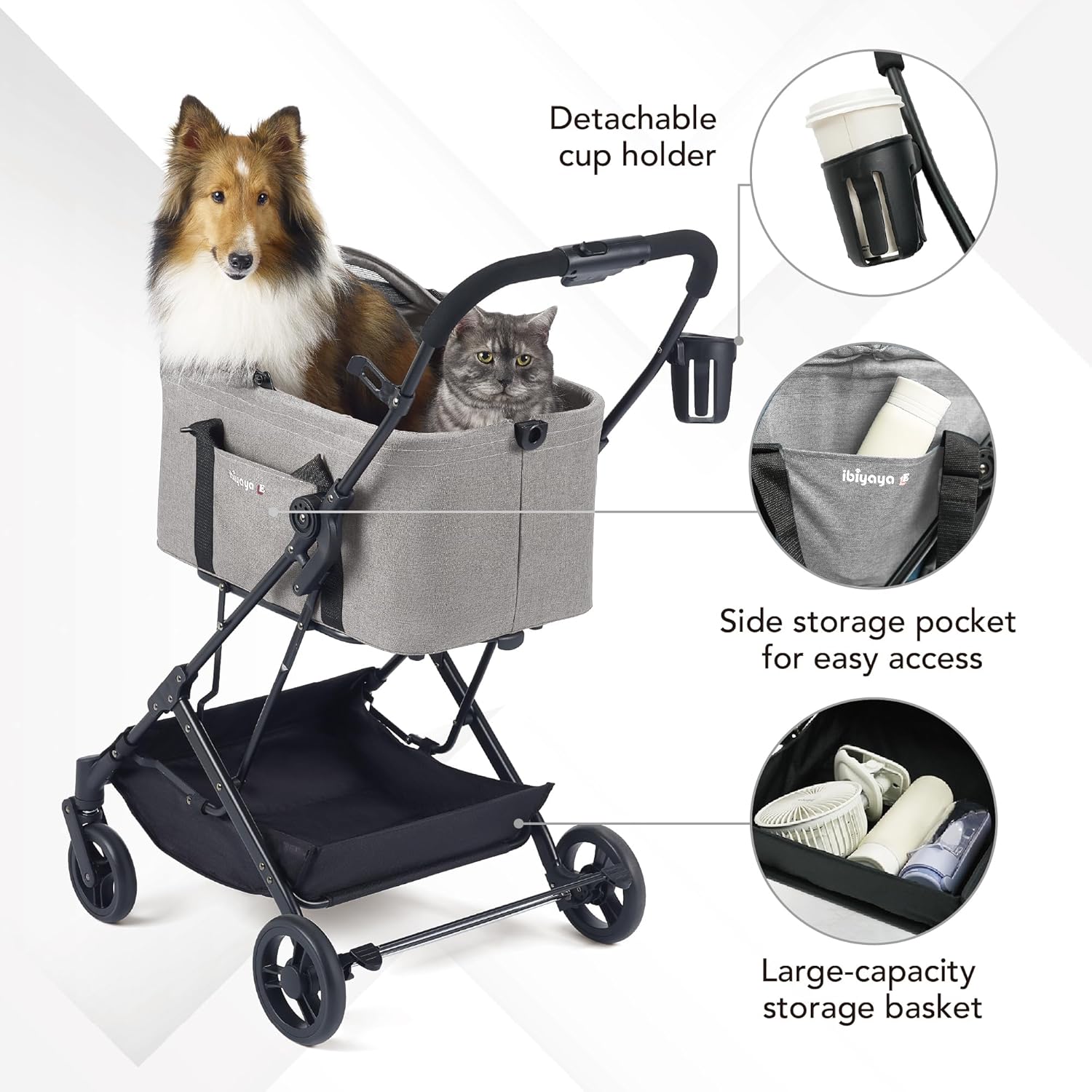 - Fumbling with Complicated Setups? With a zip-free cabin, quick snap-on carrycot, detachable cup holder, dual brakes, and space for a pet stroller pad or pet stroller fan, convenience is built right in.