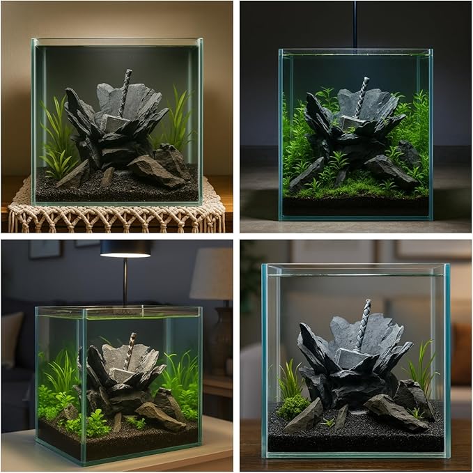 - Unique Aquascaping Atmosphere & Easy to Clean – The artistic hammer-and-rock design makes this a standout aquarium ornament. Durable resin surface is water-resistant and easy to rinse, keeping your fish tank décor clean and vivid.