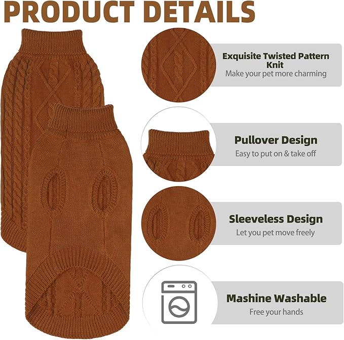 - CLASSIC TWISTED PATTERN KNIT - The classic and exquisite knitting design attracts the eyes and makes the cat more charming. This sweater will always remain fashionable and never out of date
