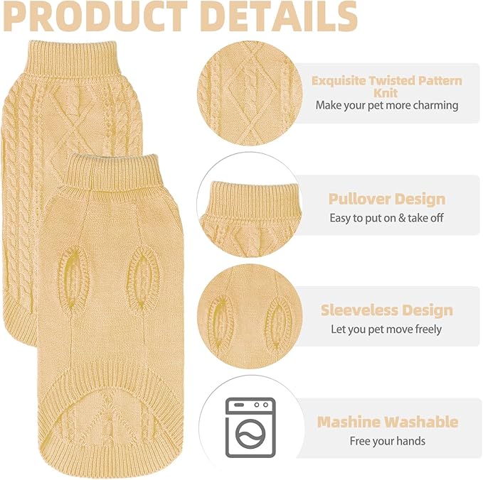 - CLASSIC TWISTED PATTERN KNIT - The classic and exquisite knitting design attracts the eyes and makes the cat more charming. This sweater will always remain fashionable and never out of date