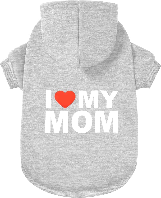 GreenJoy Dog Sweater Dog Hoodie Cold Weather Coat Hooded Sweatshirt for Puppies,Cats, Small Medium Large Dogs (Light Grey(I Love My Mom), Medium)