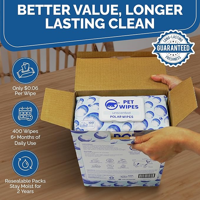 - Value Pack dog wipe – 400 Total wipes – Includes 4 packs of 100 pet care wipes, Ideal for Multi-Pet Households, giving you a long-lasting supply of pet wipes for puppies, dogs, cats, and wipes for kittens.