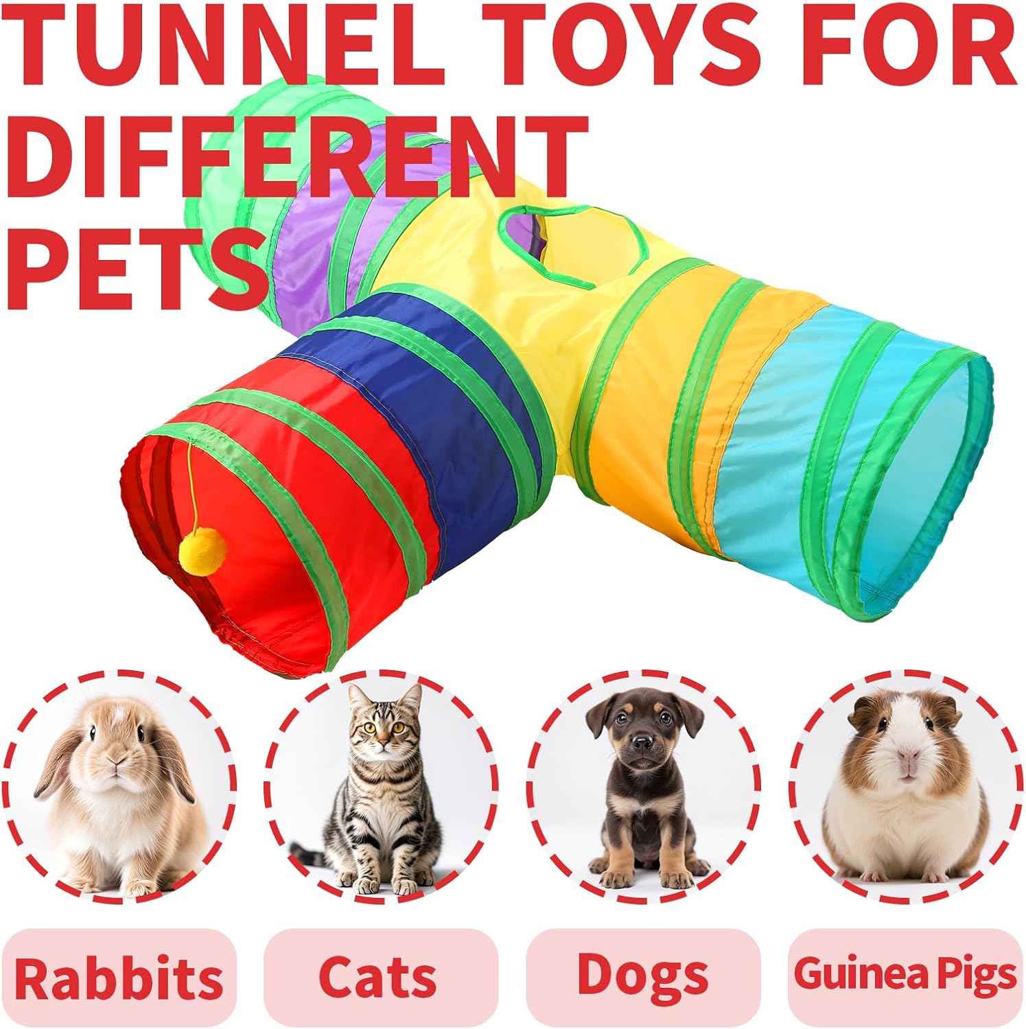 Pet Cat Tunnel, T-3 Way Tunnels for Indoor Cats, Collapsible Pet Tunnel for Kitten, Puppy, Rabbit, 25cm-Wide Tunnels, Durable & Breathable, with Peek Hole Toy Ball