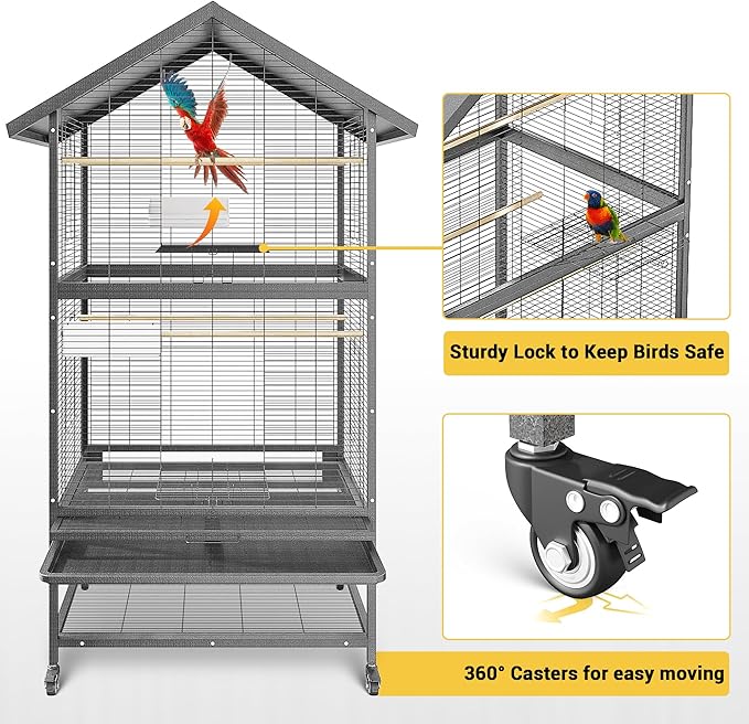 - [CONURE CAGE WITH EASY-WHEEL MOVABILITY] No heavy lifting! Four smooth-rolling wheels let you relocate this conure cage effortlessly—move indoors for family time or outside for sunshine in seconds.