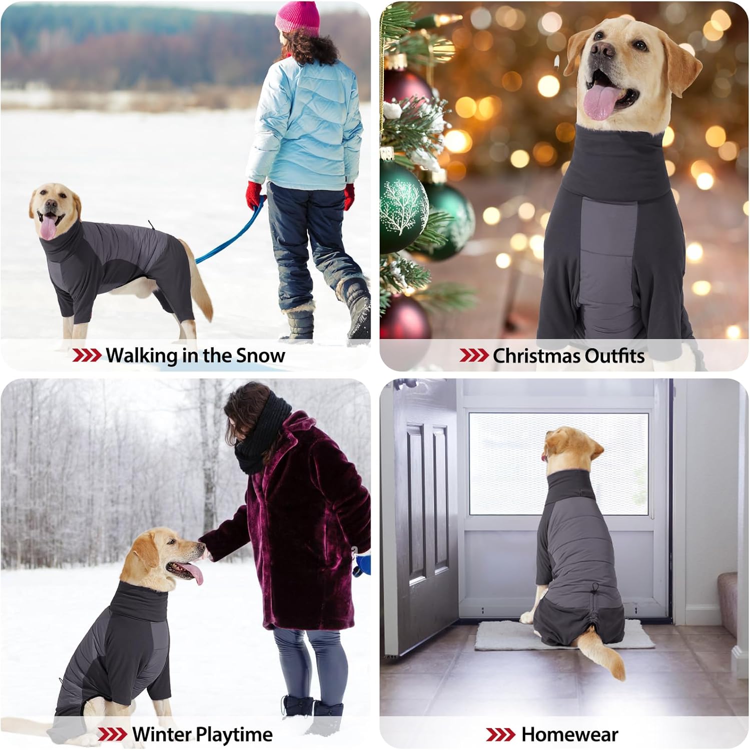 - Soft, Stretchy Fit – Available in XS to 3XL:An elastic belly band ensures a secure yet comfortable fit for different body shapes, while the adjustable drawstring at the tail helps block out cold drafts. Ideal for small, medium, and large dogs who need extra warmth in cold climates.