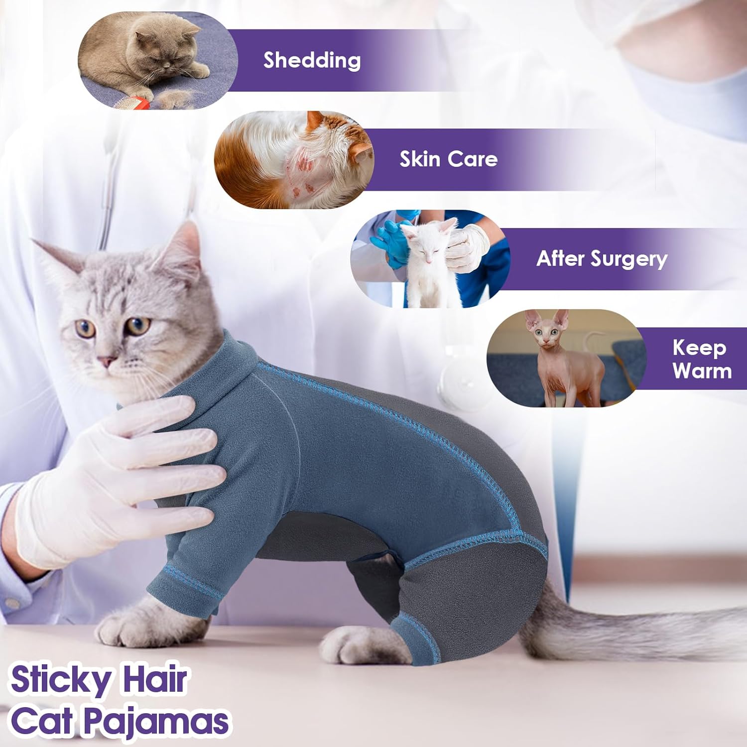 SUNFURA Hair Sticky Cat Clothes, Cat Sweater for Cats Only, 4-Legged Fleece Sweaters Kitten Pajamas Reduce Shedding Fur, Warm Pullover Shirts for Cats, Blue M