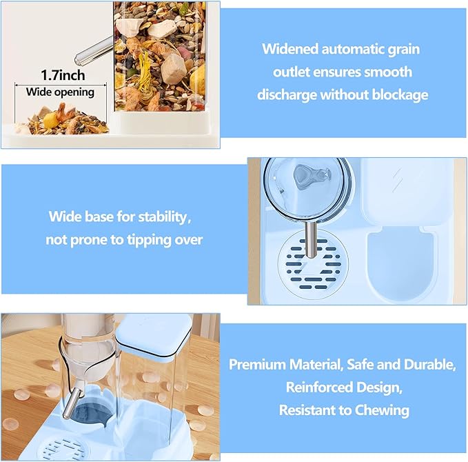 2-in-1 Hamster Water Bottle & Enhanced Food Dispenser - 35% Larger Food Capacity, Leak-Proof Design for Glass Tanks/Wire Cages Small Animal Accessories (Blue, 4.9IN+5.1IN+5.7 in)