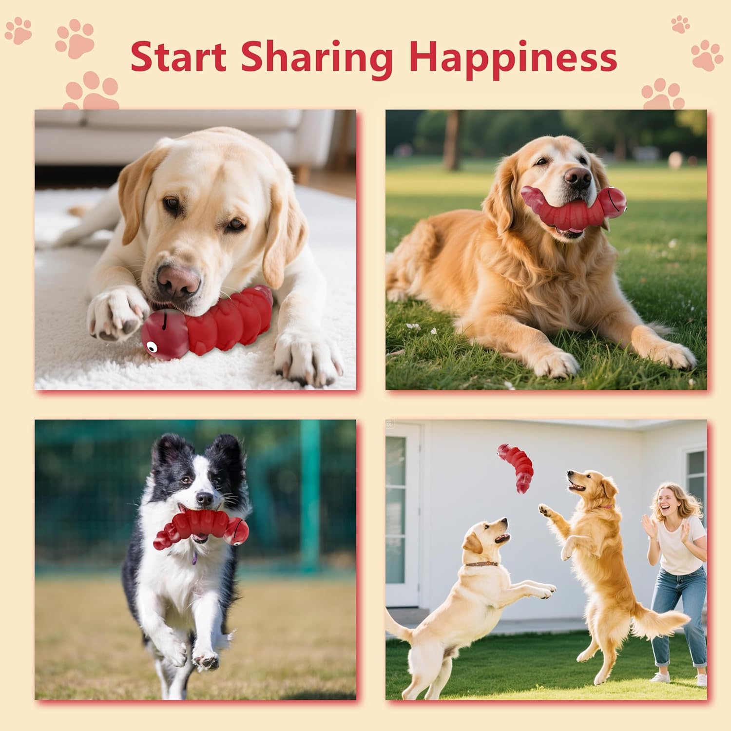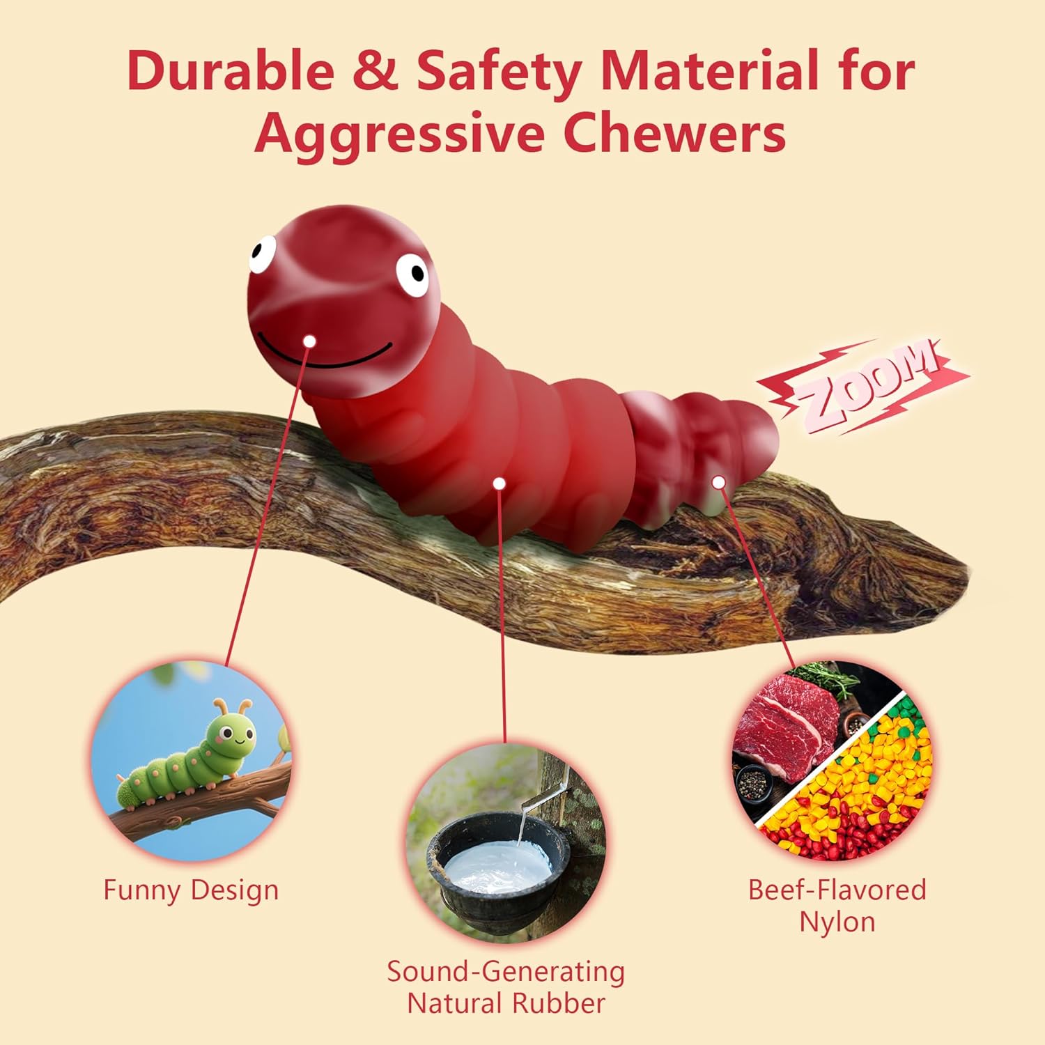 Caterpillar Dog Chew Toys for Aggressive Chewers, Tough Indestructible Squeaky Dog Toy with Beef Flavor Nylon Rubber for Large Medium Dogs to Keep Them Busy and Reduce Boredom (Red)