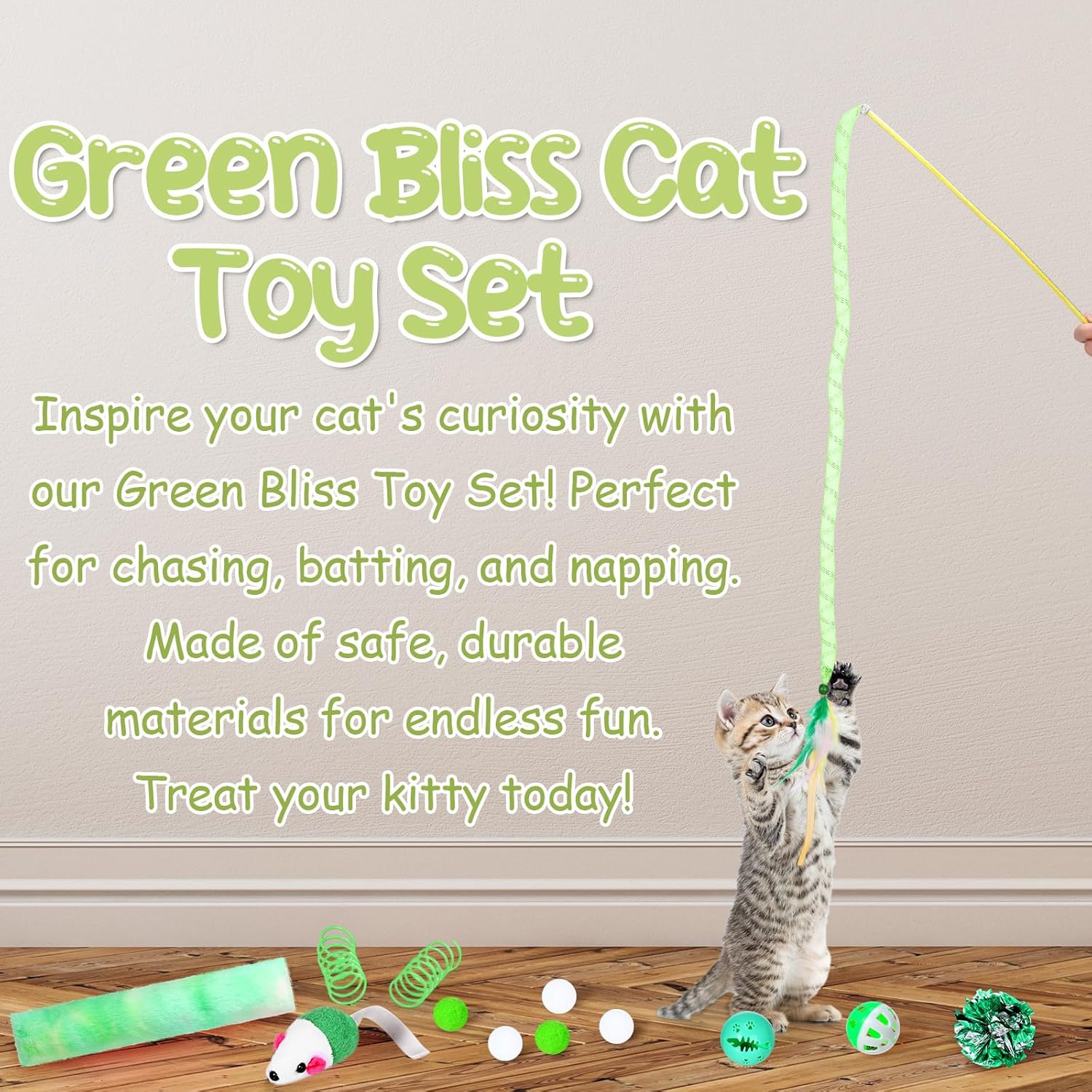 24 Pcs Cat Toys Set Interactive Kitten Toys Pack Including Collapsible Play Tunnel Feather Teaser Wand Fuzzy Ball Springs Pillow Mouse Bells for Indoor Cats Puppy (Green)