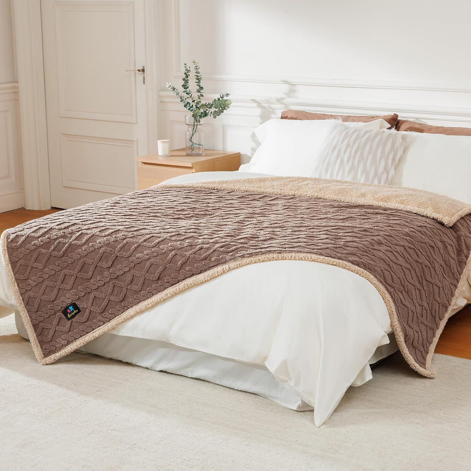Waterproof Pet Blanket, Liquid Pee Proof Dog Blanket for Sofa Bed Couch, Reversible Sherpa Fleece Furniture Protector Cover for Small Medium Large Dogs Cats, Khaki Queen Size(90" x 82")