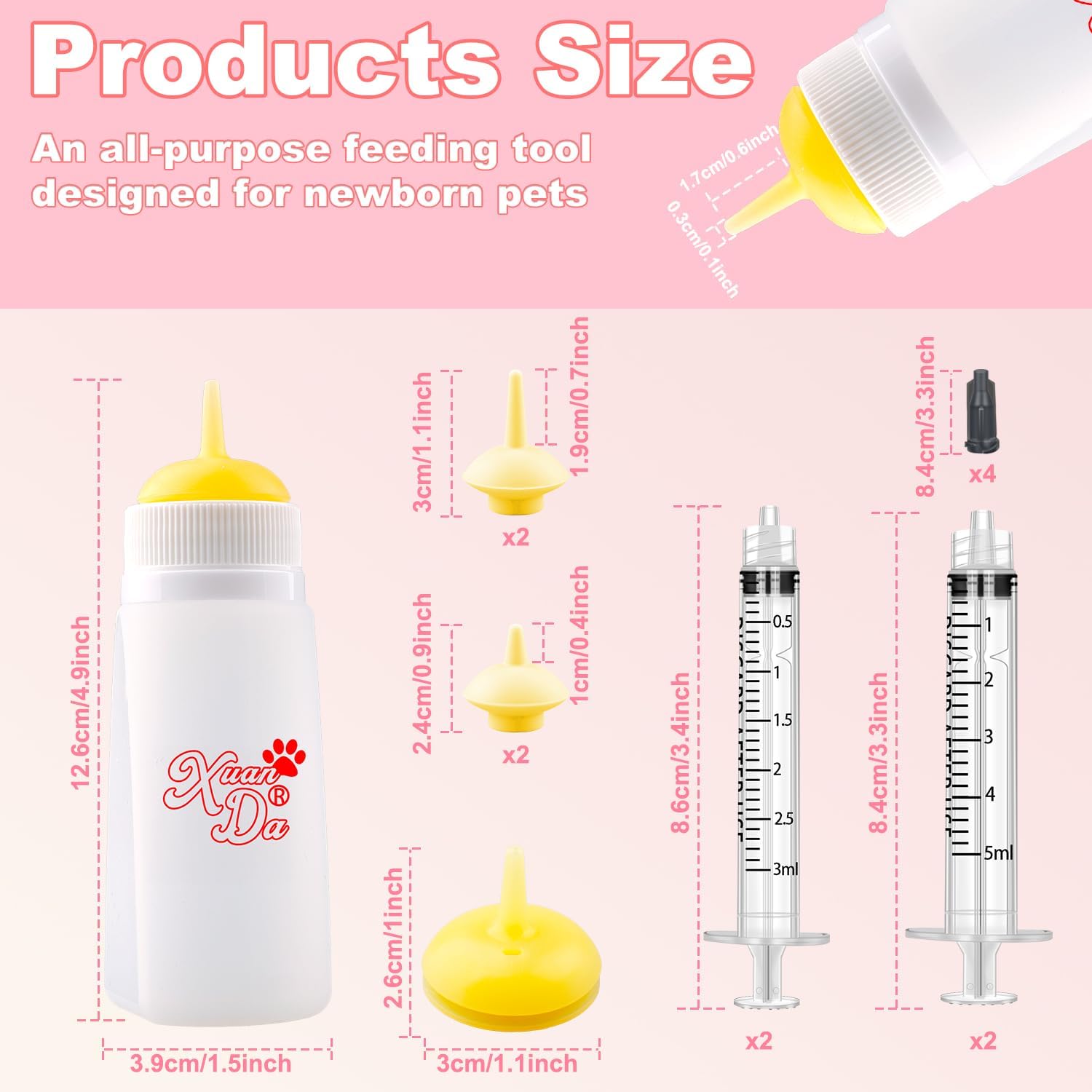 - Xuanda Pet Feeding Nipple & Bottle: The nursing bottle is made of high-quality Soft Silicone Material, BPA-free, the cap is well sealed and will not leak, the scale is clear, could better control over the amount of milk, it is heat and cold resistant, so it can be safely stored in the refrigerator or heated.