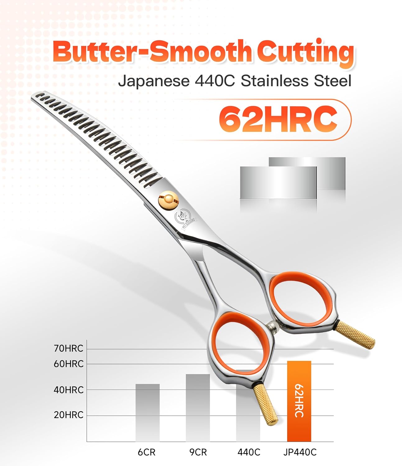 Fenice Peak 6" Small Curved Chunker Scissors, Japanese 440C Steel with Safety Round Tips, Lightweight Pet Grooming Shears for Professional Face, Paws & Body Contouring