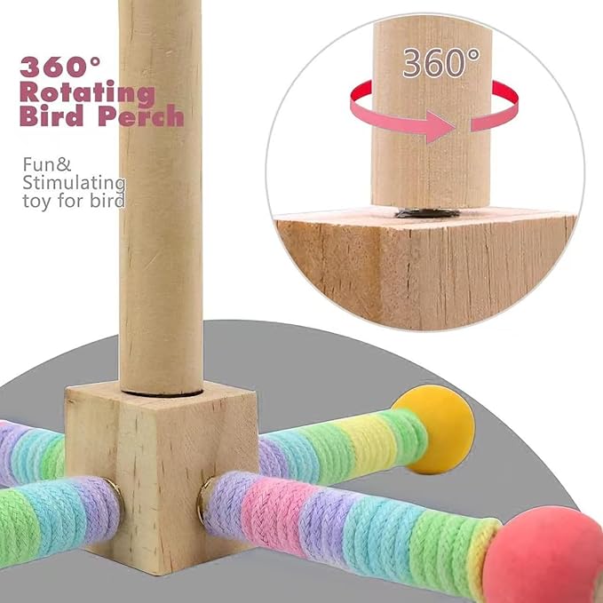 - Rotating Parrot Perch Toy with Chew Ball:Bird perch toy's 360-degree rotatable design helps birds exercise and improve their balance skills,sharpening claws, sharpening beak, playing, relieving boredom, releasing emotions. Keep birds stable and happy, eases anxiety and boredom