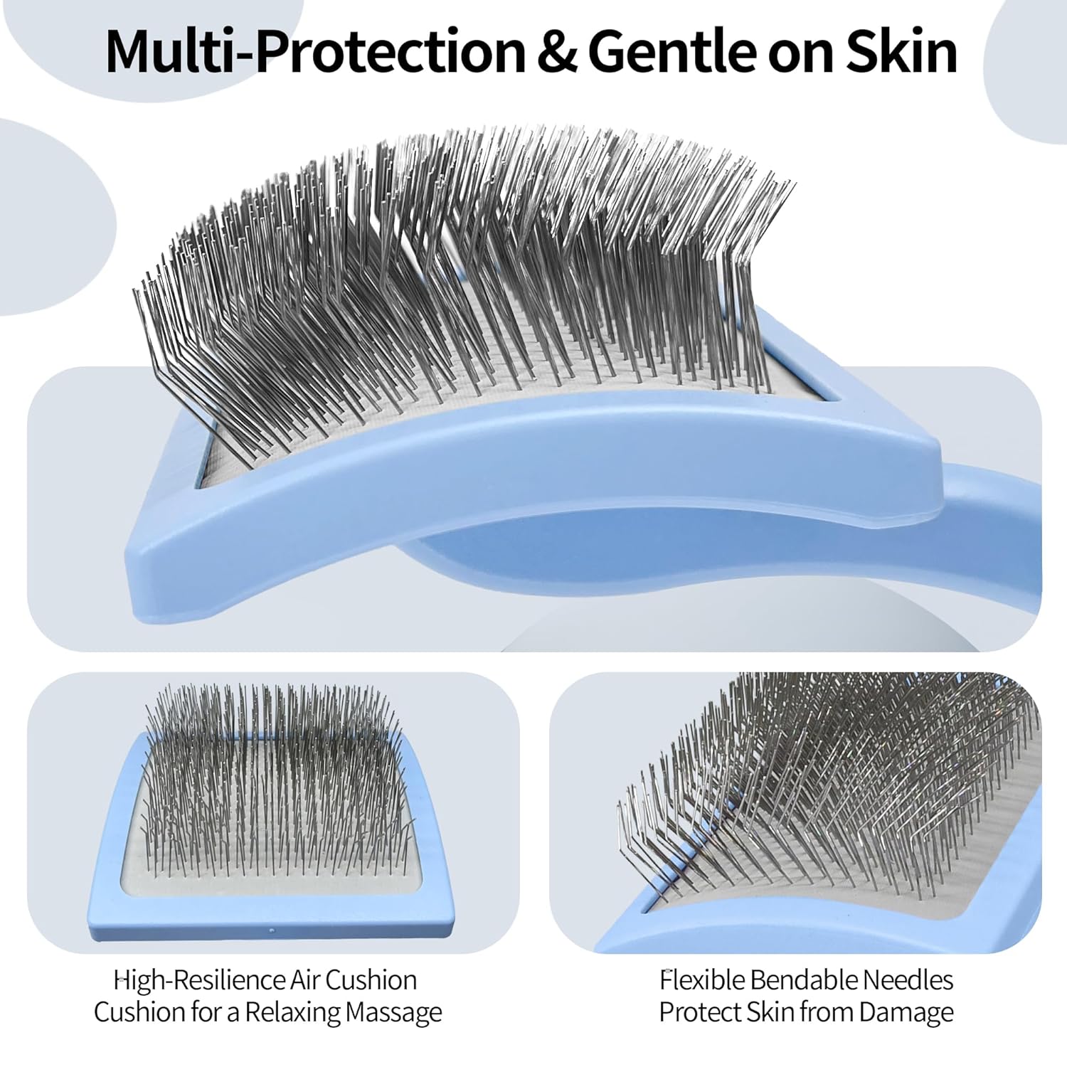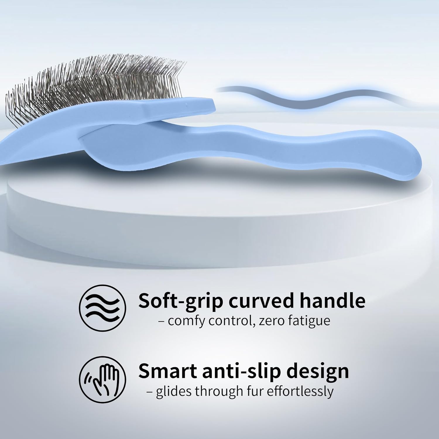 - 135° ANGLED STAINLESS STEEL PINS (2.5cm/0.4mm): Extra-long, fine pins (2.5cm height, 0.4mm thick) penetrate deep into long, dense coats. Angled design follows natural contours for smoother, more effective brushing and superior comfort.