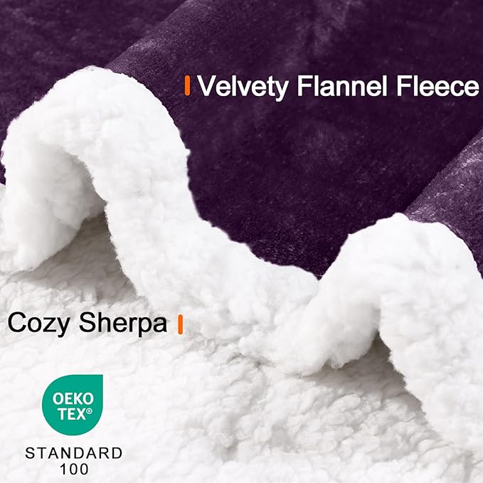 Smiry Waterproof Blanket Throw for Large Dogs, Soft Reversible Dog Blanket for Sofa Couch Bed, Washable Leakproof Sherpa Fleece Furniture Couch Cover Protector(50"x60", Dark Purple/White)