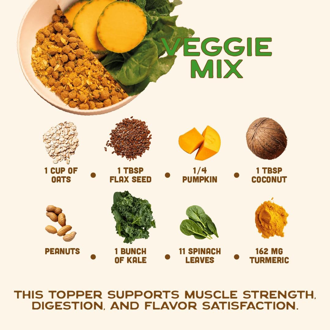 - HELP YOUR DOG EAT THEIR VEGGIES: Dogs need their veggies too, which is why we created this delicious vegetarian dog food topper. With real ingredients like kale, spinach, oats, nuts & seeds, your picky pup will have a balanced diet with all the nutrients they need, plus a tasty treat to top their meal!