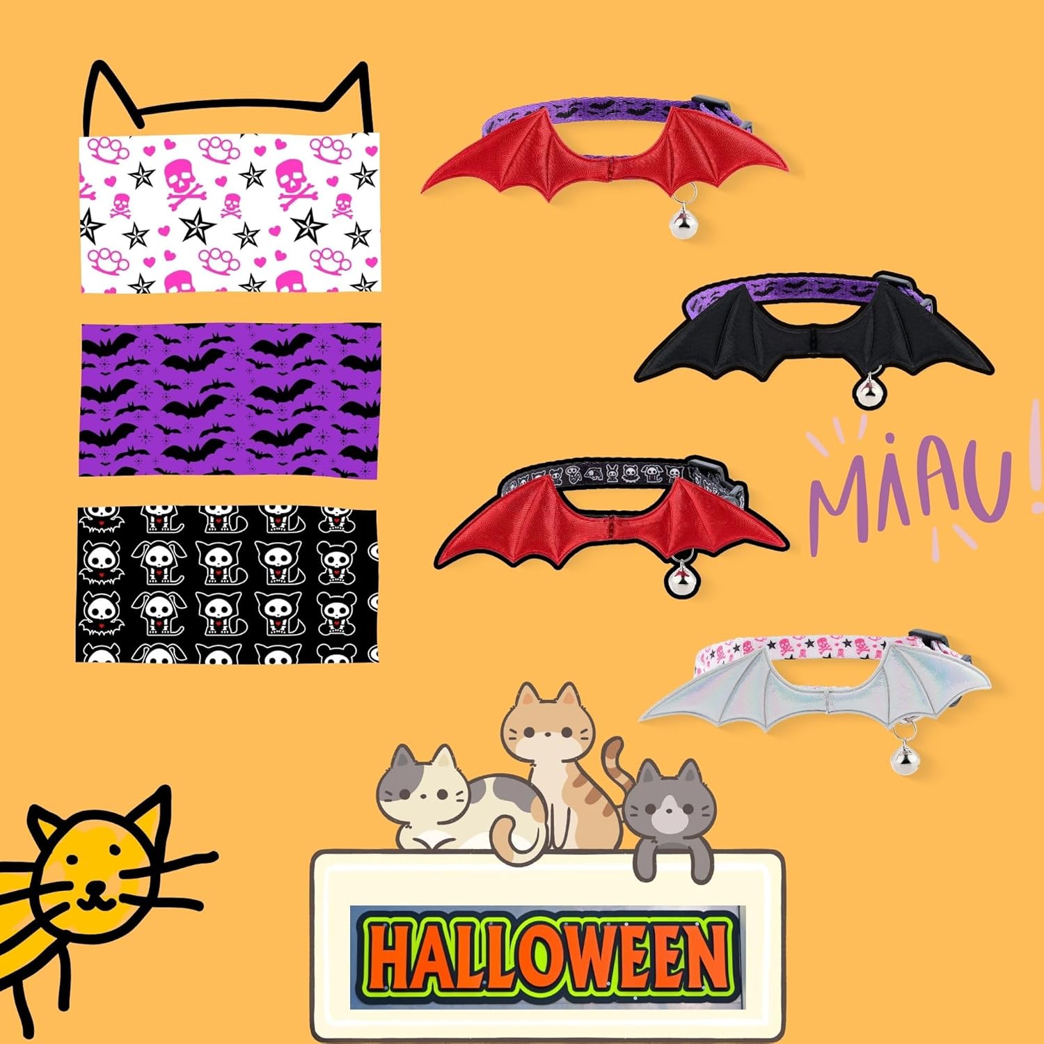 1 PC Bat Wing Cat Collar with Bell, Adjustable Kitten Collar with Safety Breakaway Buckle for Boy&Girl Cats, Halloween Christmas Cat Accessories for Kitten Puppy