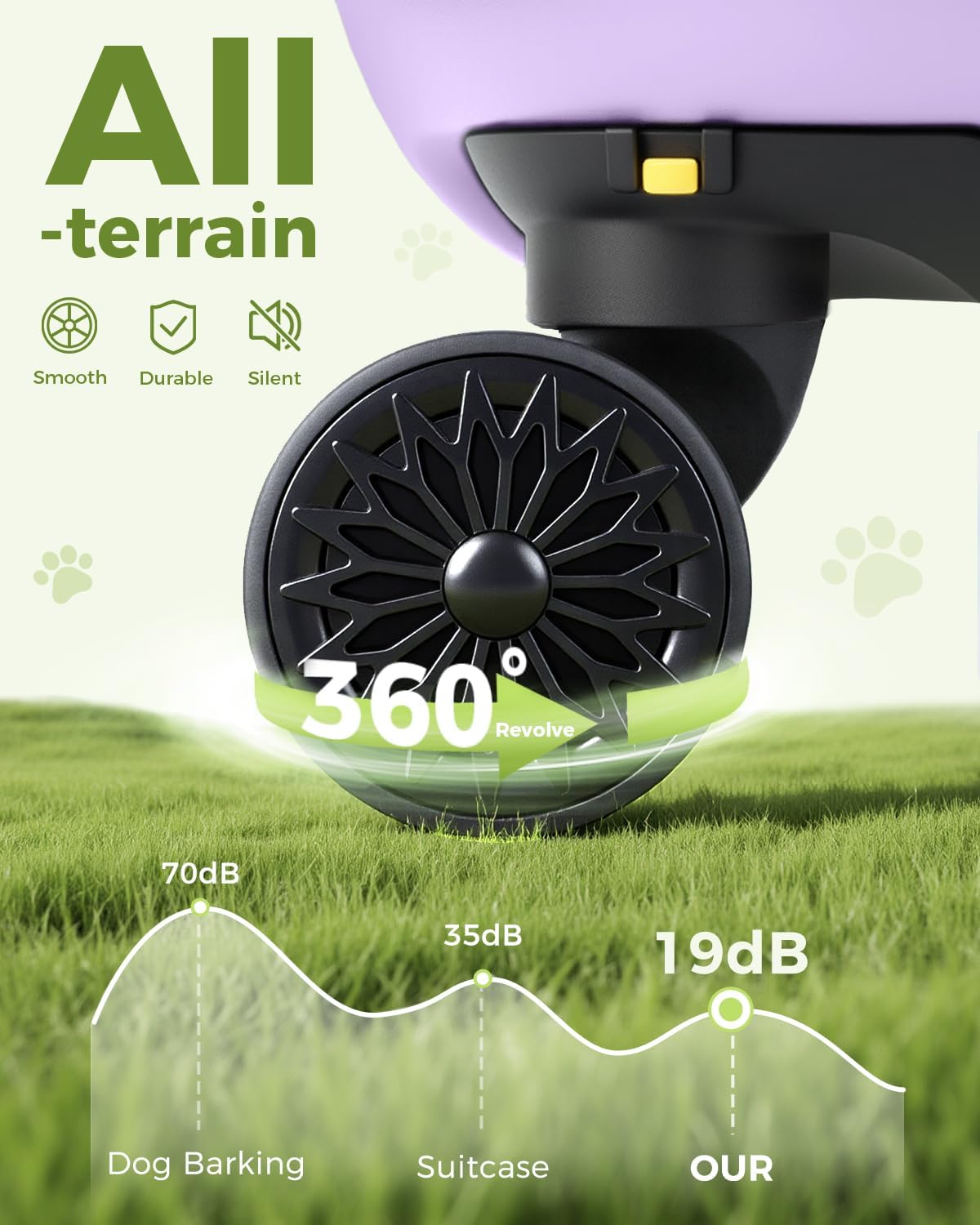 - Special Feature : Comfort: Breathable mesh + removable soft cushion for outdoor relaxation., Design: 180° wide-open entry + top access hatch for maximum convenience in outdoor scenarios., Durability: Hard luggage-grade exterior + reinforced hard bottom board + silent all-terrain wheels., Functionality: 3-in-1 (rolling/carrying/stationary pet nest) for versatile outdoor use., Mobility: Silent wheels with smooth-rolling bearings + telescopic handle for effortless transport. Comfort: Breathable mesh + removable soft cushion for outdoor relaxation., Design: 180° wide-open entry + top access hatch for maximu… See more