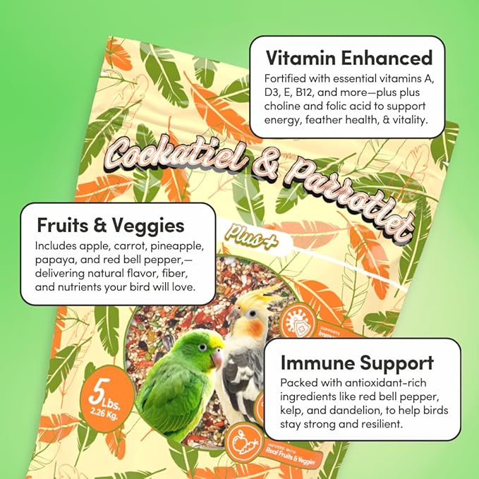 - Perfectly Sized for Small Parrots: Formulated for cockatiels, parrotlets, and similar species with small beaks and high energy needs. Easy to eat, easy to digest.