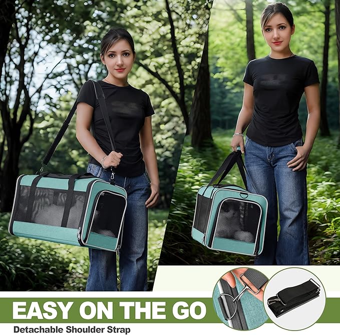 Cat Carrier 18"x11"x11" TSA Approved Ventilated Top Open Softsided Pet Air Travel Bag, Small Animal Basic Crate Shih Tzu Dog Kennel Carry Case, 4-Mesh-Side Kitty Carry on up to 20lbs Teal